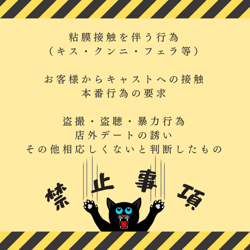 キス、フェラ、クンニなどの粘膜接触はもちろん、お客様側からの私へのタッチや本番行為は『全て禁止』となります。